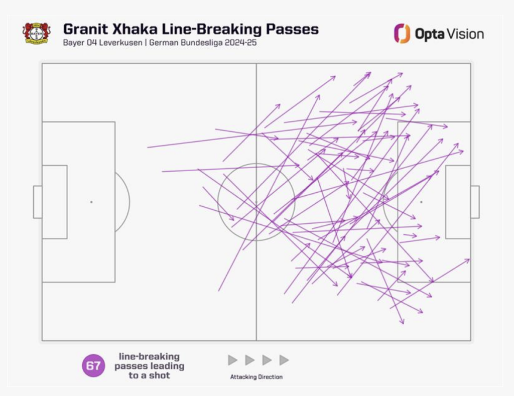 Xhaka’s disciplinary record, which was so often a problem at Arsenal, has also improved, with only three bookings across his 33 Bundesliga appearances in 2024/25.
